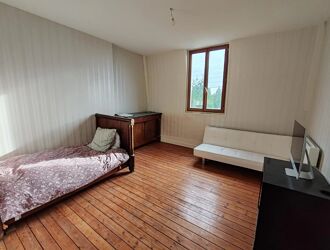 30mn ROISSY CDG, VILLERS COTTERETS, cité internationale de la langue française, proche du parc du chateau, pavillon traditionnel de plain pied, indépendant sur 600m² terrain, il a cuisine semi équipée, séjour avec poêle à granulés, 2 chambres, bureau, salle de douches, wc, sous-sol total.